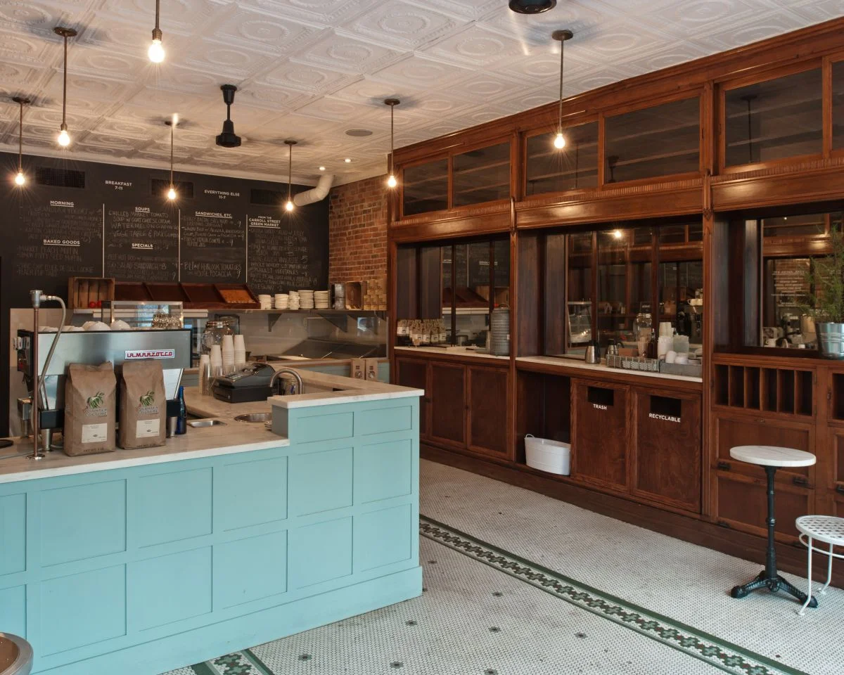 Housed in a former turn of the century pharmacy, the Smith Canteen in Carroll Gardens is a 800 sf cafe with a focus on seasonal food and Counter Culture coffee. Existing wood cabinetry was re-purposed for the functions of the cafe. Counters were located in order to maximize flow and to provide a showcase for the freshly prepared food.